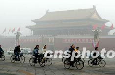 北京連日來受到大霧天氣困擾,為市民出行帶來不便。圖為籠罩在霧氣中的天安門城樓。作者:毛建軍