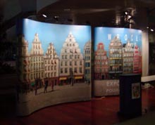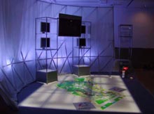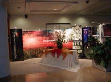 在中國的展臺,外層設有照相機鏡框形狀的白色門框,蘊涵“聚焦”之意。在門框上,還做成了一個激光豎琴,手指撥動激光束便能聽到動聽的旋律。今天一位中國姑娘將在這里演奏中國申博宣傳片的主題曲———《好一朵美麗的茉莉花》。