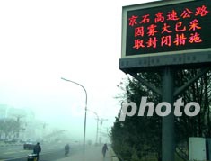 北京市交通局有關負責人告訴記者,由于八達嶺地區霧氣并不重,因此八達嶺高速路并未關閉。不過其他地區由于霧氣過重,交管部門已經緊急封閉了京石、京沈、京開、京津塘四條高速公路。這位負責人告訴記者,何時重新開放這幾條高速路要視天氣情況而定。