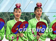 十二月三日一早,身著民族服裝的韓國美女來到摩納哥國際展覽局第一百三十二次會議場館外,為本國申博助陣,圖為正在迎候賓客的韓國美女。作者:崔煜芳