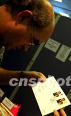 在十二月六日開幕的“香港郵票一百四十周年紀念”郵票展覽上,一套1981年7月發行的“英國黛安娜皇妃與查爾斯王子結婚”郵票受到與會者關注。中新社傳真 潘索菲 攝
