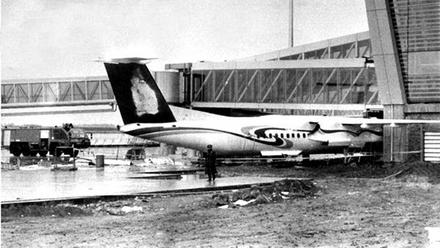 事故發(fā)生地點(diǎn)位于正在建設(shè)中的咸陽國際機(jī)場新候機(jī)樓。飛機(jī)受損情況十分嚴(yán)重,機(jī)頭已被人用彩條布包裹,螺旋槳變形扭曲,風(fēng)葉幾乎看不見。飛機(jī)左翼斷了前半截,右翼也傷痕累累。在飛機(jī)機(jī)身上,一個大大的“長”字清晰可辨,這表明飛機(jī)的主人可能是“長安航空公司”。受損飛機(jī)是一架小型客機(jī),憑經(jīng)驗(yàn)判斷其容量大約在100人,后經(jīng)詢問,這是“沖八飛機(jī)”。另外,機(jī)場工地與機(jī)場跑道之間的隔離欄已被撞斷。