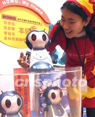 在十二日開幕的北京時尚生活展覽會上,一款可聊天、唱歌、行走的機器人大受歡迎。這款智能機器人內置老人、青年、兒童三種情景模式,上市一周就成為時髦一族的新新寵物。作者:廖文靜