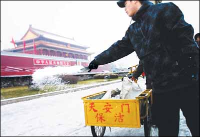 從上午剛開始下雪時,大街小巷就有許多掃雪的人,沒有責任區的公共地段也有不少群眾自發清掃。許多商家動員職工手中拿著掃帚和鐵鏟,裝備相當完善。一些城管大隊的便民服務執法車上則裝備了拖車繩、鐵锨等工具,以應對緊急情況。(李健)