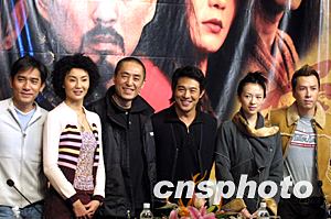 十六日,武俠巨片《英雄》在上海舉行主創人員與媒體見面會。張藝謀率五位劇中男女主角李連杰、梁朝偉、張曼玉、章子怡、甄子丹出席本次記者會。作者:湯彥俊