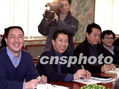 中國足協十六日首次公布選帥工作進程。中國足協國管部主任朱和元(左二)、選帥小組成員金志揚在北京(左三)稱,足協“傾向性”選定荷蘭人阿里·哈恩為中國足球隊新任主帥。作者:沈晨