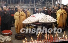 重慶市奉節縣新城的僧人,今冬為新建的佛教清凈庵大雄寶殿舉行“上梁”儀式,祈求國泰民安。為了滿足百姓對宗教信仰的需要,在許多老寺廟將隨三峽工程進展浸入水中的同時,新的寺廟正陸續興建。作者:李中全