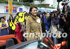 歌星容祖兒12月17日在香港出席一樓盤廣告歌《我的驕傲》MTV記者會。樓盤發展商為隆重其事出動名車接送。鄧慶樂 攝