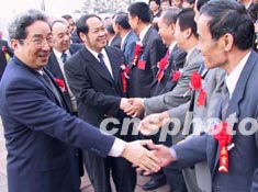 福建省政協主席陳明義(左一),十九日與出席福建省第七次歸僑僑眷代表大會的閩籍港澳代表共敘鄉情。作者:劉可耕