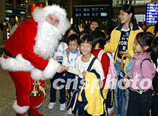 香港機場為營造圣誕節日氣氛,十二月二十日推出圣誕老人與旅客同樂活動,成為香港機場一道節日風景。潘索菲 攝
