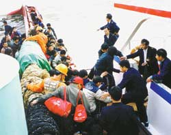 “到了凌晨4時(shí)30分,來(lái)了一艘救我們的船,大家看到了希望,高興啊。”李彥民說(shuō),雖然大家都又冷又怕,但到了關(guān)鍵時(shí)候,還是表現(xiàn)出了高尚的風(fēng)格。團(tuán)里的小孩、老人是第一批被送到救援船上的,接著是女人,男人們都是最后上船的。最后一批獲救者登船的時(shí)間是早晨7時(shí)30分左右。