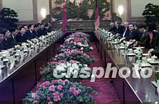 國務院總理朱镕基二十九日在北京與德國總理施羅德舉行會談。作者:滿會喬