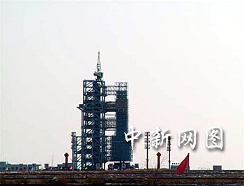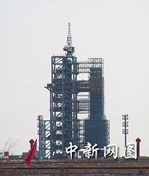 組圖:“神舟”四號飛船發射前倚立于發射塔旁