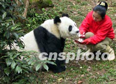在一片賀歲聲中,大熊貓“青青”和“巴斯”仿佛知道了人類的善舉,也顯得特別高興,為此,它們也在飼養員的指揮下,表演了幾個精彩節目,頓時,熊貓世界成了歡樂的海洋。