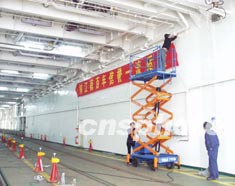 工作人員認真檢查粵海鐵輪渡一號艙內設施,確保通車萬無一失。