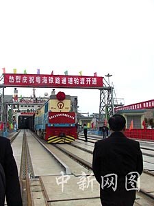 中新網南港1月7日電 運載有火車車箱的中國首艘火車跨海渡輪“粵海鐵1號”今天上午近十時十分進入海南的南港防波堤口,“粵海鐵1號”首次正式橫渡瓊州海峽順利完成。