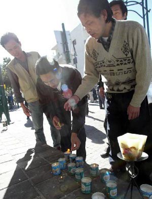 中國工人悼念以自殺性爆炸中遇難同胞