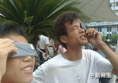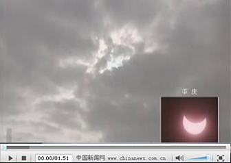 中新網(wǎng)7月22日電 7月22日,500年一遇的日全食奇觀引發(fā)了網(wǎng)絡上的一次盛大“天文聯(lián)歡”。來自全國各地的網(wǎng)友自發(fā)組成了“直播團隊”,以網(wǎng)絡為平臺發(fā)布圖文,記錄自己觀測此次天文奇觀的情況。可惜天公不作美,多個省市天陰云厚,觀測活動受到了嚴重影響。一位江蘇網(wǎng)友就笑稱:“看來咱們得爭取再活500年,到時候再觀測吧!” - 中新網(wǎng)記者重慶報道:2009-7-22 09:32