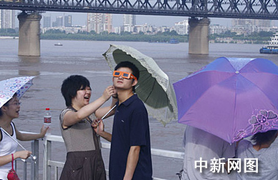 中新網(wǎng)武漢7月22日電(記者 艾啟平)22日8時14分,日全食“光臨”武漢市并出現(xiàn)初虧現(xiàn)象。至8時55分,武漢市上空云量呈逐漸增多趨勢,微風陣陣,氣溫明顯下降。