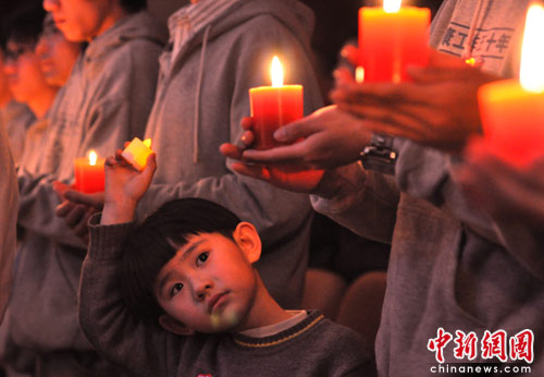 圖:西寧各界民眾冒雪悼念玉樹地震遇難同胞