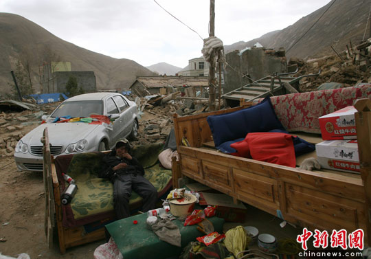 玉樹震中點日麻村幾家民房僅出現窗戶玻璃破碎