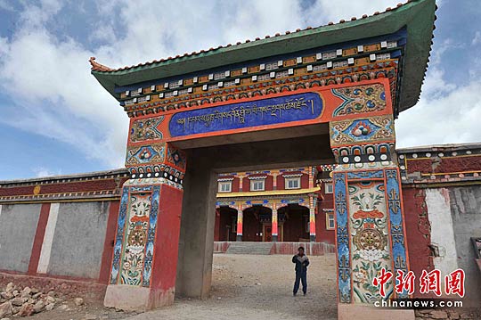 圖:玉樹震中點日查榮寺寺門兩邊出現裂縫