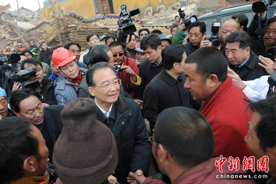溫家寶到禪古寺看望受災(zāi)僧侶及民眾