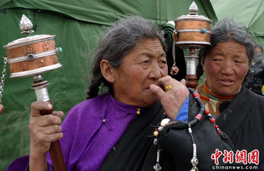 玉樹震區(qū)街頭藏民轉(zhuǎn)經(jīng)祈福