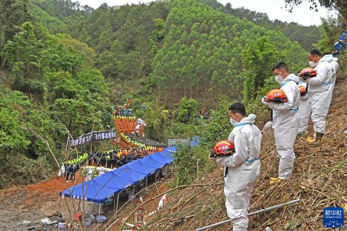 廣西消防救援人員向東航墜機地點三鞠躬
