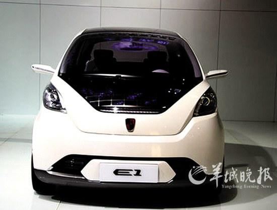 上汽純電動概念車榮威E1也是2010年世博會中國國家館的鎮館之寶之一。做為中國國家館低碳區唯一的產業化方向新能源汽車展品,E1將向全球介紹中國新能源汽車產業化發展成果。榮威E1為單廂三門四座A00級轎車,車身設計運用One Box概念,最大限度拓展車輛內部空間。E1搭載了性能安全的磷酸鐵鋰電池系統,最高時速為120km/h,最大續駛里程為135km,0-100km/h加速時間為16秒。該車具備快速充電功能,30分鐘內可充電80%。預計將在2012年正式實現量產。