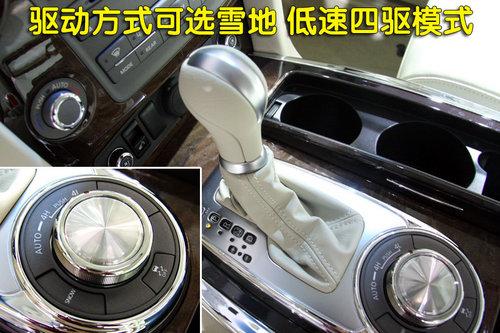 也許看到這里你仍然覺得這確實非常像一款豪華轎車,但是這個金屬材質的旋鈕還是清晰的告訴你它真的是一款SUV車型。似乎在你沒有仔細閱讀使用前,你會覺得這個旋鈕似曾相識,但是它的作用卻是驅動轉換的操作系統?梢运矔r切換高速四驅、低速四驅及雪地三種模式,如果你覺得這樣很繁瑣,也可以將其調節到AUTO自動模式下,它也會根據實時路況做出聰明的反應。