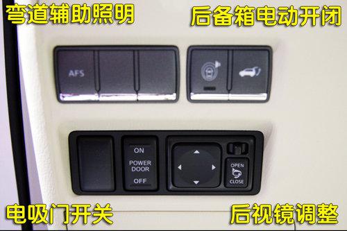 在方向盤左下方的控制區域內包含了前大燈彎道輔助照明、后備箱電動開啟、電吸門開關(上車下車無需使勁拉動車門,在閉合時采用自動的吸入的方式)和后視鏡調節折疊功能。
