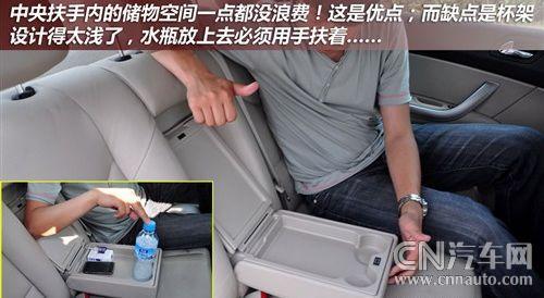 由于標(biāo)致408的軸距達(dá)到了2710mm,因此其后排擁有很寬松的乘坐空間。從上圖可以看到,體驗(yàn)者腿部前方將近兩拳半的活動(dòng)空間,可讓乘坐者任意擺出最舒適的姿勢。寬厚的后排座椅可為乘客提供舒適的駕乘感受,另外,在后排中央扶手箱內(nèi)還設(shè)置有一個(gè)內(nèi)藏式儲(chǔ)物格,可以放置一些體積不是很大的物品。