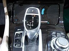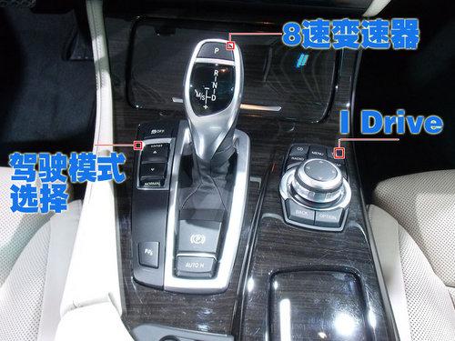 新款國產5系Li的變速器依然位于中央扶手部分,外形設計與新款7系轎車相同,為符合人體工程學的飛行手柄式,在其旁邊還有關閉穩定程序、懸架舒適性調節、i-drive等相關控制按鈕,而在這支變速器桿所連接的部分是BMW全新的8前速手自一體變速器。