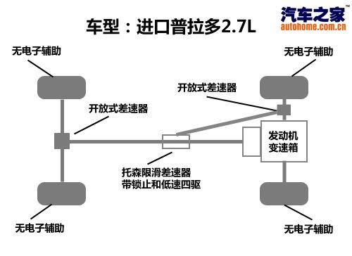 以下四驅系統介紹及測試只代表進口普拉多2.7L車型的水平,國產4.0車型四驅系統與之不同。