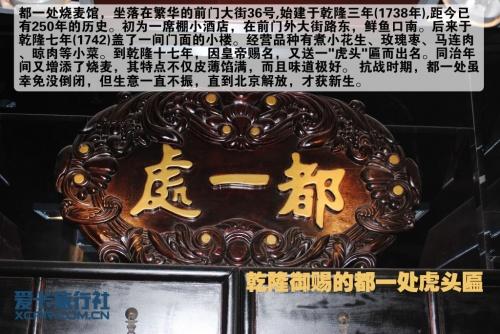 “都一處”名稱的來歷頗有幾分傳奇色彩,當(dāng)年乾隆皇帝從通州微服私訪回京途經(jīng)前門,當(dāng)時(shí)所有的店鋪都已關(guān)門,只有一家“王記酒鋪”亮燈營業(yè),便進(jìn)店用膳,由于招待周到,酒味濃香,小菜可口,所以對(duì)小店產(chǎn)生了興趣,便和店主閑談起來詢問酒店叫什么名,店主回答:“小店沒名”。乾隆聽后說:此時(shí)京城開門的就你一家“就叫都一處吧!”乾隆回宮后親筆題寫了“都一處”店名,將其刻在匾上,幾天后宮中派人送來這塊虎頭匾。從此“都一處”代替了“王記酒鋪”,生意十分紅火。