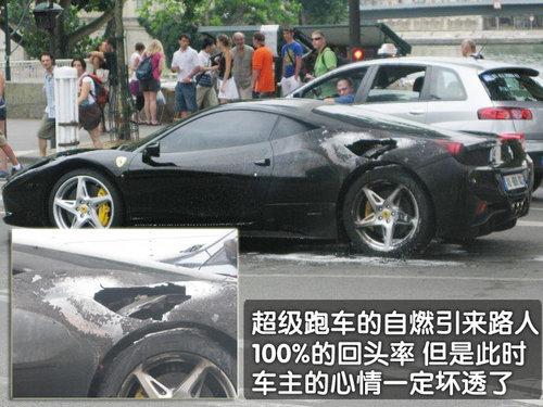 不過近日一則來自法國的消息不僅僅意味著一臺名貴的法拉利已經報廢,同時也讓我們再次將目光投向了超級跑車的頻繁自燃。這一次事故發生在法國巴黎,這位身著紅色衣服的車主看上去絕對是一個超級的法拉利車迷(從他紅色的衣服就能看出來)。據他介紹他的這臺嶄新的458才僅僅買了幾天就這樣被燒毀了。