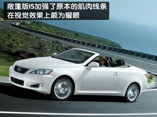 雷克薩斯IS硬頂敞篷版的車身前半部的造型設(shè)計,與轎車版本的IS車系擁有極為神似的設(shè)計,前保險杠、頭燈、后視鏡以即車門把手都和轎車版本的IS車型相同。在車身側(cè)面,敞篷版IS加強(qiáng)了原本的肌肉線條,無論是開篷后的拉風(fēng)身影,或是關(guān)篷時的跑車線條,都充滿了跑車的動感效果;車尾部分,敞篷版IS則采用全新的LED尾燈設(shè)計,以區(qū)別和轎車版本的差異,在視覺效果上頗為耀眼。