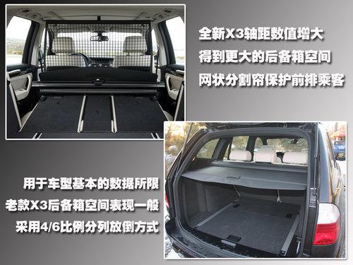 老款X3由于車身數(shù)據(jù)的限制,后備箱空間表現(xiàn)一般,4/6的后排座椅放到比例,空間變化比較靈活。全新X3后備箱空間相對較大,寬度跟深度都有著很好的表現(xiàn),后排座椅采用40:20:40的放倒設(shè)計(jì),這樣的處理非常靈活,網(wǎng)狀簾保護(hù)了乘客不會(huì)因?yàn)橥蝗坏闹苿?dòng)收到貨物撞擊的傷害。