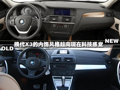 內(nèi)飾的風(fēng)格,老款X3經(jīng)過將近4年的歲月,設(shè)計(jì)風(fēng)格顯然有點(diǎn)趕不上潮流,大面積顏色裝飾感覺缺乏質(zhì)感,中控臺(tái)的設(shè)計(jì)也比較有復(fù)古。換代X3的內(nèi)飾采用了寶馬全新的設(shè)計(jì)感覺,簡單的中控臺(tái)設(shè)計(jì)很直觀,桃木材質(zhì)的使用更加突出了內(nèi)飾的高品質(zhì)。