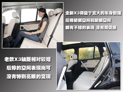 新款寶馬X3擁有2810mm的長軸距,后排乘車的坐乘感受得到了很好的保障,腿部空間是最明顯得到體現(xiàn)的地方。老款X3用于上市時(shí)間較長,數(shù)據(jù)方面相對沒有對太多優(yōu)勢可言,但常規(guī)情況下還是可以滿足日常的使用需求的。