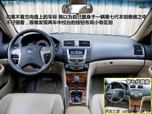 第七代雅閣的風格同樣也延伸到F6的車內,無論色彩搭配、整體造型都非常雷同。盡管這已是幾年前的設計,但現在看起來并不過時,甚至依然有些時尚之意。如果不仔細看,很難發現兩車的中控臺按鈕布局還是小有區別的,模仿功底的確不錯。