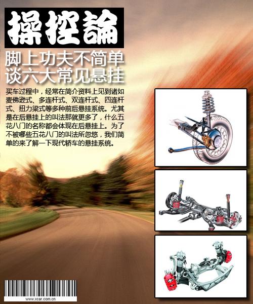 買車過程中,經常在簡介資料上見到諸如麥佛遜式、多連桿式、雙連桿式、四連桿式、扭力梁式等多種前后懸掛系統。尤其是在后懸掛上的叫法那就更多了,什么五花八門的名稱都會體現在后懸掛上。為了不被哪些五花八門的叫法所忽悠,我們簡單的來了解一下現代轎車的懸掛系統。