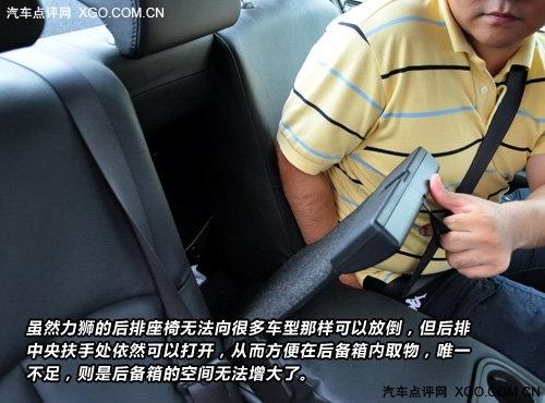 當(dāng)然如果排除后排的第三個(gè)人,一個(gè)人或者兩個(gè)人坐在后面,還是很舒適的,后排的中央扶手不僅寬大,而且高度適中,水平放置后,位于杯架后的部分真皮包裹,十分柔軟,肘部放在上面的角度也合適,即使杯架內(nèi)放置了水瓶,乘客的胳膊也不會(huì)受到絲毫影響。更不會(huì)出現(xiàn)乘客為了胳膊支撐在扶手上而采取一個(gè)很不舒服的坐姿的情況。力獅的后排座椅無法放倒,卻可以從中央扶手的靠背處打開,方便從后備箱內(nèi)取物。