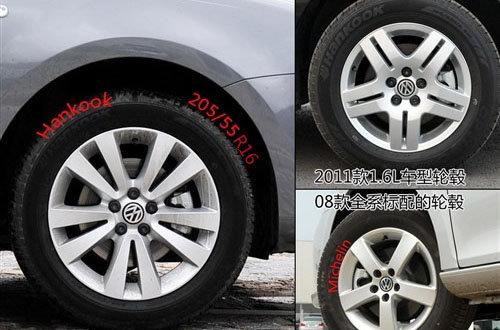 寶來此次改款的重點是動力和內飾,所以只對外觀進行了細微的改變。比較明顯的變化來自輪轂,新寶來1.6L車型和1.4T車型都使用了全新樣式的輪轂,相比08款簡單的5幅輪轂,2011款的兩種5組10幅輪轂顯得更加動感。