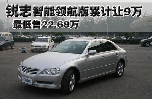 據北京一汽豐田4S店銷售人員介紹,目前銳志在售的2.5S車型全系可享受到3.5萬元的現金優惠,銳志 REIZ 2.5S AT特別紀念和2.5S AT/MT特別導航版現車供應充足,且主流的白、黑、紅、銀、蘭5種顏色齊全,另外店內推出智能領航版車型,該車與銳志的超級運動版(26.58萬元)配置完全相同,整車集成了智能導航系統、倒車影像、三屏DVD、遠程遙控啟動系統,車載冰箱、智能鑰匙系統、一鍵啟動、秘密鍵盤鎖、自動升窗、收鏡系統、安全防盜系統、引擎鎖定、智能升窗、震動感應、開門報警、行車下鎖、藍牙、運動擋泥板套裝等豐富配置,新增配置均為原廠配件。增配價值超出5萬元,該車市場指導價26.68元,現在購車優惠4萬元,該車數量有限,喜歡銳志的朋友這個時候出手最值。其余車型均已停產不接受預定。銷售人員還表示:在售的這三款車型是豐田銳志賣的最火的也是性價比最高的三款車型。2011款的銳志9月上市,現開始接受預定,消費者交訂金1萬便可排號提車。北京地區各4S店由于訂單不同,各店銷售的現車顏色有所不同。