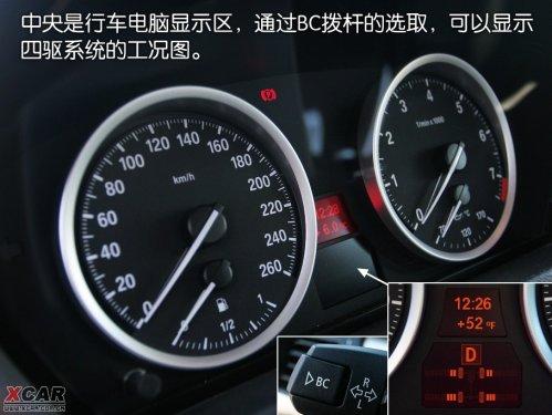 通過復(fù)雜的越野路況肯定不是寶馬X6的強悍,人家畢竟是SAC(運動型多功能跑車)。但寶馬xDrive的動態(tài)行駛控制系統(tǒng),通過后橋上的差速器,利用電動機和一組復(fù)合齒輪和兩個離合器在前后橋同時實現(xiàn)動力的分配轉(zhuǎn)移。換句話說,寶馬xDrive能在保持前后動力分配比率的同時,向車身一側(cè)車輪傳遞動力。值得指出的是,作為一款所謂運動型多功能轎跑車,X6盡管不具備奔馳GL那樣的底盤調(diào)節(jié)功能,但25.1°的接近角和達(dá)到25.5°的離去角已經(jīng)很夠格,達(dá)到甚至超過了很多SUV的水平。
