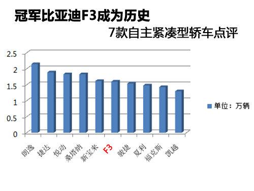 比亞迪F3退居二線,其實(shí)從我個(gè)人而言,我更認(rèn)為并非僅僅是因?yàn)槲覀兝习傩諏τ谲囕v的選擇從僅僅考慮低廉價(jià)格的思想上升到了使用品質(zhì)的追求,畢竟這樣一款常年位居緊湊型轎車榜首的車型突然降到第六名,下降趨勢僅僅一個(gè)月時(shí)間,就猶如美國奮進(jìn)者號墜機(jī)一樣……比亞迪在近期推出了其緊湊型轎車的所謂旗艦車型L3,雖為旗艦車型,但是筆者我實(shí)在沒有看出它除了定位很“旗艦”以外,其它到底旗艦在何處。