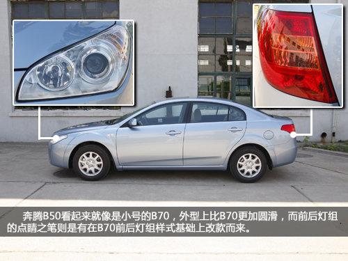 奔騰B50的外觀給人直觀的感覺就是個(gè)縮水版奔騰B70,但是B50的樣式更加的圓滑,并且其細(xì)節(jié)部分與B70也有著不少差距。