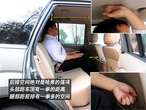 空間大、更實用是SUV車型的普遍特點,在這方面外觀大氣的哈弗車內的表現同樣不錯,身高175cm的編輯坐在前排頭頂還有四指的空間,而坐入后排后頭部空間增加至一拳,腿部則有一拳以上的距離。
